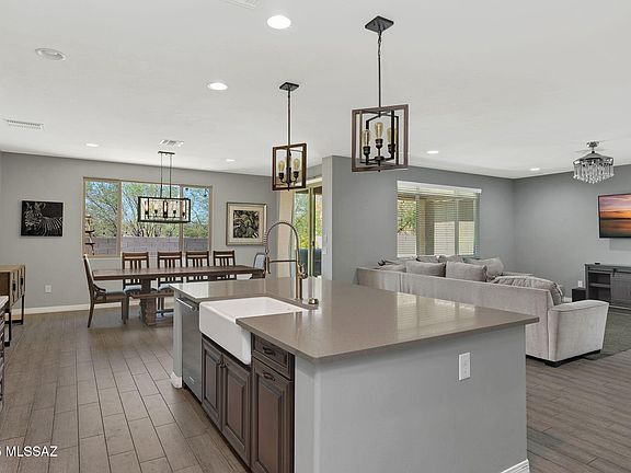 This stunning residence is tucked away on a private end lot in a desirable Oro Valley gated community. Bordering a serene common area, this home offers peace, privacy, and desert views from nearly every room.BOASTING 5 BEDROOMS (including a junior suite), 4 bathrooms, a versatile media room, dedicated office/craft room, and an upstairs loft, this spacious floorplan provides endless flexibility for modern living.Step inside to find designer upgrades throughout: offset cabinetry, striking contrasting quartz countertops, and elegant wood-look tile flooring that flow seamlessly through the open great room and dining area. The fully insulated garage with extended driveway and the thoughtfully landscaped backyard featuring Faux turf and pavers add both comfort and convenience.Located in Located in a top-rated school district, this home combines luxury, functionality, and locationmaking it an exceptional value.