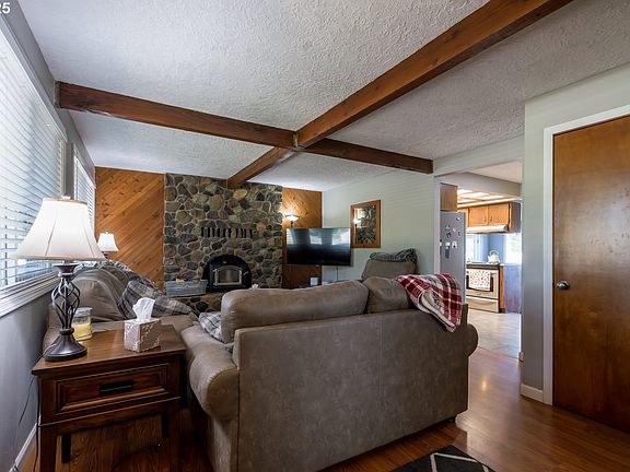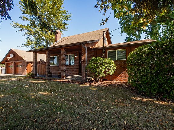 Own a piece of Battle Ground history with this adorable cabin home built in 1920 on a level one-acre. With 1540 square feet, this home and land have a ton of possibilities. From the moment you walk into this amazing home, you just feel cozy. The living room with an absolutely gorgeous rock fireplace with wood wood-burning insert, and wood beams in the ceiling, really delivers your cabin feel & brings up images of snuggly winter nights by the fire. The kitchen is light and bright with morning sun, plenty of counter space, and is open to the vaulted dining room. The laundry room is the perfect mud room for a home on acreage with a door to the outside. The primary bedroom is on the main floor with a walk-in closet that leads to a spacious bathroom. Upstairs is a large bedroom and a den, perfect for an office or play area. The land, though, is a perfect one-acre level spot of paradise with a fenced area for pets, gardening, or play, and has a 400-foot barn/shed. RV Parking on the side of the detached brick 676 sq ft garage. The acreage extends to the dirt road on the south side, the barbed wire fencing on the north side, and all the way to the trees on the east side. All of this and only mere minutes from town!