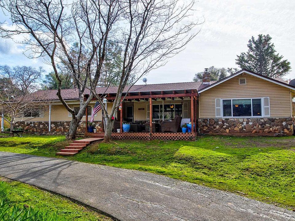 Over 2 acres & a BEAUTIFUL INGROUND POOL! This updated single level home is just minutes from historic downtown Columbia and boasts all the privacy and room you could want! Many aspects of this home have been updated; all new flooring, updated/custom cabinets and counters in the kitchen (with hidden trash compartment), pebble tech pool system put in 3 years ago, new water softener system, enclosed garden area with bubbler system, and 3 decks to take in all the beauty and relaxation space of your new home! All of this sits on over 2 acres and allows you ample space to entertain, use your land, and store all your extras and toys! You will definitely want to come see this one in person! Newer higher end owned Solar that brings you a very small sometimes single digit power bill!!! Build your mini farm and garden and come live self sustaining in the Foothills of Gold Country!