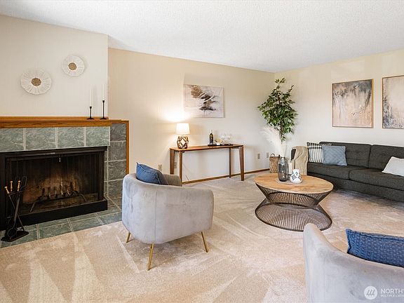 Immaculate ground floor Condo in Lake Ballinger Estates! Fresh paint, carpet & lighting. Living room with fireplace & formal dining room with sliders to large private patio, storage & beautiful garden overlooking green lawn, perfect for entertaining. Spacious kitchen with hardwoods, new appliances, lots of cabinets & a pantry. Large laundry room with newer water heater + storage. Lovely Primary Suite with en-suite bath. 1 car carport, plus private storage cabinet & plenty of off-street parking. Complex features beautiful grounds, clubhouse & a pool. Unbeatable location- walk to Light Rail & Transit Stations. Lake Ballinger across the street & just mere minutes to shopping, pubs & eateries! Centrally located for both North & South commute.