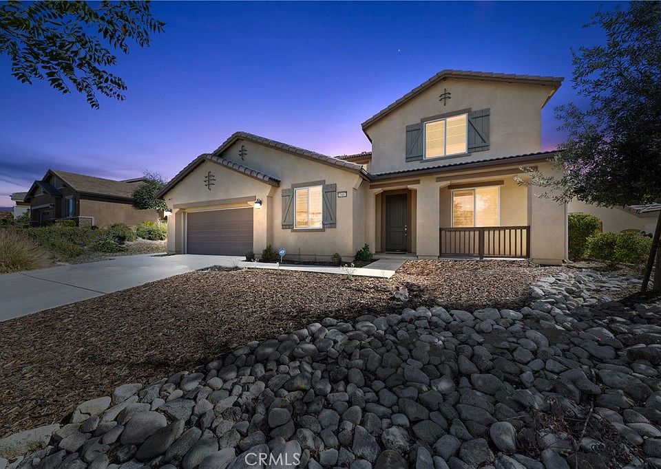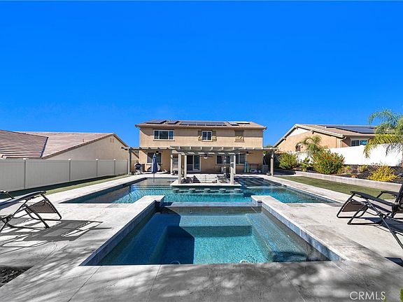 **OPEN HOUSE 11/29/25 Time 11am to 2pm All Furniture is included - POOL HOME** Just reduced Below Market .. TURNKEY- This stunning modern farmhouse, featuring $265,000 in pool upgrades, offers a private backyard oasis complete with a sparkling pool, two waterfalls, a splash pad, and in-water seating beneath an elegant pergola. Spanning 3,404 square feet, the home includes five bedrooms, three bathrooms, and a cozy loft. The interior boasts luxurious vinyl plank flooring and a chef's kitchen equipped with high-end appliances and a double oven. The spacious living room, highlighted by a gas fireplace, opens to a covered patio where you can enjoy the tranquil sounds of the waterfalls. Ideally situated near the 15 and 215 freeways, as well as various dining options and two Target stores, this property perfectly balances luxury and convenience. Opportunities like this are rare—don’t miss your chance to experience resort-style living every day! Schedule your private tour today before this dream home is gone!