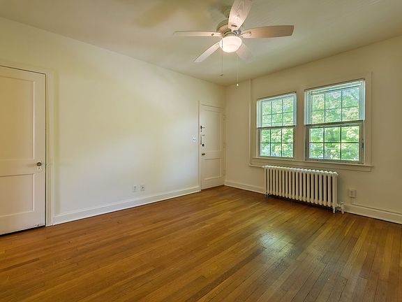 Recently-installed kitchen cabinetryRadiator heatWindow air conditioning unitsGreat lightWood floorsOwn screened porch