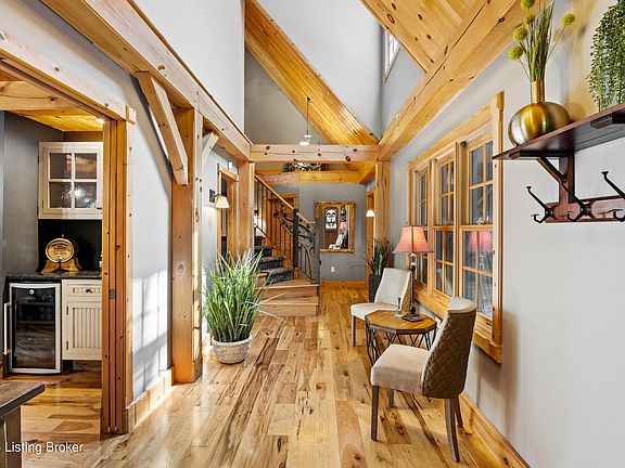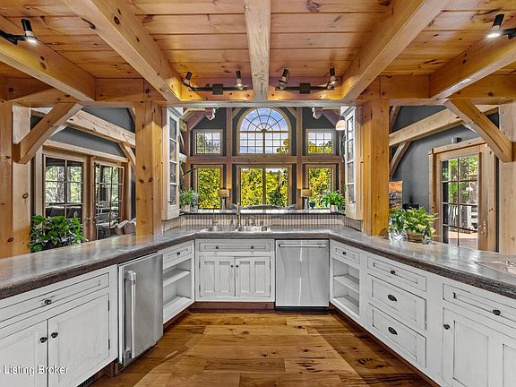 Discover a truly unique log cabin nestled upon 7.75 private acres in Shelby County, perched above the scenic banks of Floyds Fork Creek. This extraordinary property feels more like a vacation destination than a residence, offering the rare opportunity to live surrounded by nature while remaining close to Louisville conveniences.