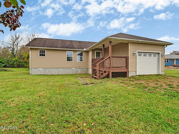 Expansive private back deck! Perfect for relaxing, entertaining, or enjoying the surrounding nature. Large yard with room for gardening or play. Single Car Garage.