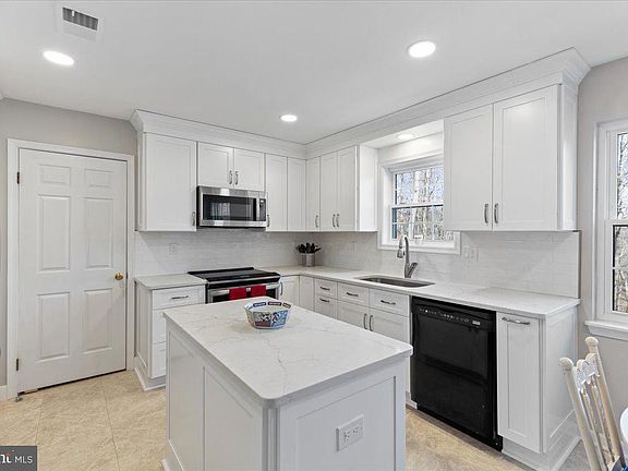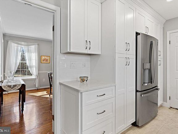 This 4 bedroom, 3 1/2 bath colonial sits on over 4.5 beautiful, private, wooded acres. The large lot is tucked away in mid-county with easy access to most any local destination, and is less than 40 miles from DC metro. This fantastic lot with a front yard carpeted by lush grass and mature trees along the side and in the back sits at the end of a long driveway. You will enjoy living in the woods with a small creek at the back of your property. Home and gardens are intertwined such that all can be accessed from inside and outside with a very easy flow for owners and guests. The over-sized, two-car garage allows plenty of space for a large workbench. An added bonus is a mudroom with floor-to-ceiling shelves. The impeccably maintained interior features hardwood floors throughout. The bedrooms are large with plenty of storage. The custom, gourmet kitchen has recently been completely renovated with white cabinets, upgraded, GE Profile appliances and Quartz countertops. Off of the kitchen and breakfast room is the family room with a wood fireplace and access to a large deck overlooking the woods and creek. The finished basement has a full bathroom, also recently and completely renovated, a large den with a sizable, freestanding wood-burning stove for those winter months in the woods. You will appreciate the wet bar and small refrigerator. Glass sliding doors offer access to a covered patio. Beyond this, there are additional rooms for an office or extra bedroom. The walkout basement leads you up the hardscaping to the driveway and detached shed. The detached shed is large enough to accommodate a car and is fully electric. It also has a loft where there is even more storage for tools or other items. Additionally, you will find that there is a covered gardening bench/work area in case you want to add to the flowers and bushes that have already been established.