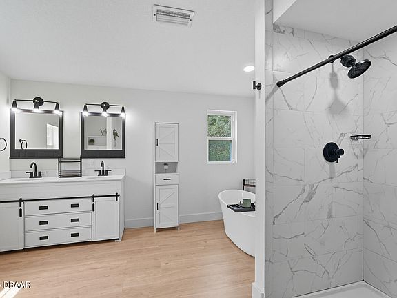 Experience the best of country living on 1.16 acres in a beautifully remodeled home that combines modern upgrades with space, privacy, and endless possibilities! This spacious 5-bedroom, 2-bath home was remodeled a few year back by Hulbert Homes and features an inviting split floor plan, with a primary suite designed for ultimate relaxation. The primary bedroom offers plenty of space, a ceiling fan, and a generous walk-in closet, while the ensuite bathroom includes dual vanities, a soaking tub, and a separate shower—your personal spa-like escape at the end of the day! Two additional bedrooms are also spacious with walk-in closets, and the remaining two feature built-in closets; all bedrooms include ceiling fans for comfort throughout. The heart of the home is the updated kitchen with solid wood cabinets, solid-surface counters, a center island, and modern appliances, perfect for cooking, entertaining, and gathering. The living room features a cozy wood-burning fireplace, ideal for relaxing evenings with family and friends. Step outside to enjoy peaceful pond views, a chicken coop, gazebo, workshop, and plenty of room for horses or hobbies! Enjoy the privacy and tranquility of country living while still being within easy reach of Palm Coast, Flagler Beach, and local dining, shopping, and recreation. The home is equipped with a water softener, water filtration system, well, and septic, along with a 2-year-old roof and luxury vinyl floorseverything you need for comfort and convenience This is more than a home; it's a lifestyle. Schedule your private showing today and start living the life you've been dreaming of!