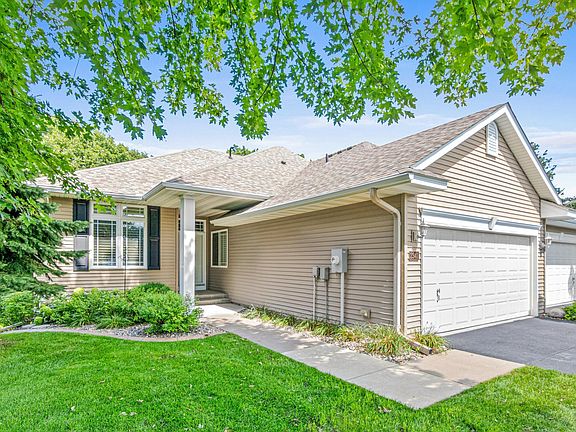 Steal of a deal! Over $100,000 in upgrades! This meticulously renovated twin home offers all amenities on one level with soaring 10 ft ceilings, plus a walk-out basement to a private backyard. This gem boasts vaulted ceilings, gorgeous hardwood floors, two fireplaces, and features a gourmet kitchen with granite countertops, custom cabinetry, center island, and an induction cooktop. The charming sunroom with French doors, immersed in the private tree line, is perfect for relaxing. The main-level Primary Suite is complete with a spacious walk-in closet and spa like en-suite that includes a custom vanity and luxurious shower. The finished walkout basement offers a spacious family room with a gas fireplace, two bedrooms, and a bath. Perfect for movie and game nights or entertaining guests. Enjoy a quiet neighborhood with access to 37 parks and 30miles of scenic trails. This is unparalleled maintenance-free living in Hastings. This move-in-ready home is a rare find. Don’t miss your chance to own this exceptional property. Schedule a showing today! Seller is willing to pay the first year of association fees.