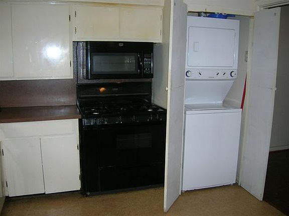 Nicely maintained 3 BR, 1 BA house within walking distance to school. Parquet floor in living room. Bedrooms are carpeted. A second living or dining area opens to attached front entry garage, kitchen, back and side yards. The back yard is large, contains a shed, and is fenced. Gorgeous red oak tree in the front yard. Nice appliances, including gas range, built in microwave, refrigerator, and stack washer and dryer remain with the house.
