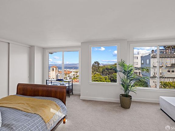 Welcome to 2341 Leavenworth St, San Francisco, an exquisite detached home on an extra-wide, extra-deep lot with panoramic views from every level! Across from Fay Park, this residence offers a flat sunny yard, 3 decks, side-by-side 2-car parking, mature landscaping, abundant storage, elevator, and 3 ensuite bedrooms. With 4 spacious bedrooms (possible 5th on lower level or a view office) and 4 baths, the home spans nine beautifully designed rooms. Inside, skylights and recessed lighting flood each level with natural light. The chef's kitchen features a breakfast bar and modern appliances, while the living area centers on a decorative fireplace. French doors open to a sunny garden for outdoor living. Upstairs: two large ensuite bedrooms, each with sitting areas, spa-like baths, soaking tubs, and private balconies (front with bay views, rear overlooking garden). Main level: living, dining, kitchen, sunroom, laundry, bedroom, bath. Lower level: bedroom, family room, bath, and office/5th bedroom. Recent upgrades include fresh exterior paint and major inspection items addressed. Experience the best of San Francisco living - elegance, comfort, and location in one!