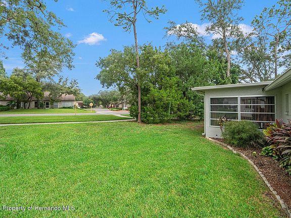 Welcome to this light, bright, and beautifully maintained home nestled in the highly desirable Timber Pines 55+ community! This charming residence features an updated kitchen, new touchless faucet, pantry and new appliances (2022) convection oven, fresh interior and exterior paint (2022), new insulation, and modern light fixtures. The white ceramic tile flooring flows seamlessly throughout, creating an open and airy feel. Guest suite with bath with new vanity adn tub/shower combo, new comfort commode. Linen closet for storage. Primary Bath has shower, new vanity and comfort commode. Spacious primary bedroom has 2 walk-in closets. Enjoy peaceful mornings on your welcoming front porch with remote controlled retractable awning while appreciating the privacy of a quiet cul-de-sac location. Roof 2022, HVAC 2022, Feel secure with 10 year transferable HVAC warranty.