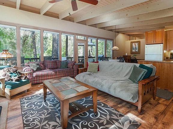 Nestled amidst the serene splendor of the Sierras, this enchanting creekside cabin is a haven of tranquility and charm. Spanning 1.59 acres of gently rolling terrain, this lovingly remodeled retreat boasts a setting straight out of a storybook. The cabin's warm, inviting atmosphere is immediately apparent, with its expansive windows framing picturesque views of the surrounding dogwoods and the melodious whisper of Moran Creek. Step outside onto the private deck, where you can savor the soothing sounds of the flowing water and the gentle rustling of the leaves, creating a perfect backdrop for relaxing with family and friends. This unique home, with its timelessly elegant updates, seamlessly blends modern comforts with rustic allure. The open-beam ceiling and a cozy fireplace with a pellet insert provide a perfect spot for gathering and unwinding on cool evenings. The metal roof, both functional and distinctive, adds to the cabin's one-of-a-kind character. The gently sloping terrain offers ample space for exploration and outdoor activities, enhancing the sense of freedom and connection with nature. Whether you're lounging on the spacious deck or enjoying the view from the great windows, this cabin promises a magical retreat where every moment feels like a fairytale!
