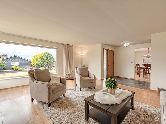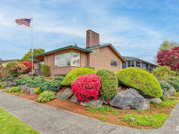 Amazing opportunity to own your slice of Olympic Manor. Mature well Maintained neighborhood. A community that shows pride of ownership throughout with broad spacious streets. Mid-Century home with peekaboo view of the sound. A previous owner/wine maker created a temperate controlled wine cellar in the basement. Spacious rec room ideal for entertaining. Potential to create second living space/mother-in-law area on lower level. Beautiful brick exterior, Hardwood floors, Corner Lot and a beautiful patio area in the back yard. This home is located in the heart of Ballard and close to shopping, restaurants, schools, and parks. Super low HOA dues of only $150 per year.
