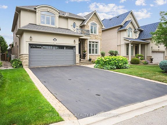 Welcome to this stunning, 4 bedroom, 3 bath executive residence nestled in the heart of Joshua Creek one of Oakville's most prestigious and sought after neighbourhoods. Boasting over 3,000 sq ft of beautifully appointed living space, this home blends luxury, functionality, and timeless design. The main floor offers a desirable home office/den, ideal for working remotely or studying in privacy. The spacious family room features dramatic vaulted ceilings and expansive windows that bathe the space in natural light, creating an open and airy atmosphere. At the heart of the home is a new, spectacular custom kitchen equipped with premium cabinetry, high-end appliances, quartz counters, and a large centre island perfect for gatherings and everyday family living. Upstairs, you'll find four generously sized bedrooms, including a serene primary suite with walk-in closets and a spa like ensuite bath. All bathrooms are designed with both style and function in mind. Step outside to your private backyard oasis featuring custom landscaping and perennial gardens bordering a beautiful inground pool, ideal for summer relaxation and hosting friends and family. The professionally designed outdoor space is both low maintenance and stunning, offering the perfect extension of your living area. Located on a quiet, family friendly street, this home is just steps from top rated schools, parks, trails, shopping, and major highways. A rare opportunity to own a turnkey home in one of Oakville's premier communities - this is Joshua Creek living at its finest. 10+++