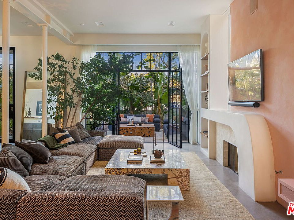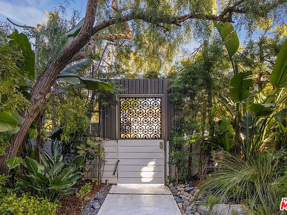 The inspiring creative spirit of Venice is alive and well in this one-of-a-kind treetop oasis, nestled behind gates and luscious tropical landscaping. Meticulously designed with a nod to organic modernism, no detail has been overlooked. Warm tones, rich textures and natural materials create a serene sanctuary. A jaw-dropping custom steel greenhouse door and wall of glass welcomes you into a dramatic open living space with soaring ceilings, abundant natural light, polished concrete floors, and a lime-washed wall that creates an ambiance of rustic elegance and comfort. Inspired by Big Sur's iconic Post Ranch Inn, the kitchen exudes sophistication with a rich palette of custom finishes, including textured wood cabinetry, bespoke tile backsplash and Brazilian quartzite countertops. Equipped with top-tier Sub-Zero and Wolf appliances, this heart-of-the-home space perfectly integrates with a luxurious built-in breakfast banquette ideal for cozy mornings with your favorite brew. Every space has been intentionally designed to foster creativity and elevate daily living. Upstairs, versatile spaces for work and leisure ensure you'll never want to leave home. A bright lounge room welcomes you with expansive windows, custom display shelves, and a striking steel and glass wall. Adjacent is a library/office where you'll feel as if you're in a greenhouse, with a wall of floor-to-ceiling sliding doors that open to a balcony of cascading succulents. It's a perfect spot for incubating your newest venture, yoga and meditation or simply enjoying the treetop views. Two sunlit bedrooms complete the floor, while the dreamy primary suite occupies its own level, featuring a spa-like en-suite and a closet you can catwalk in. Completing the experience is a panoramic-view roof deck with a built-in fireplace and wine fridge, where cool sea breezes and breathtaking sunsets await. Steps from your front door, a convenient pedestrian shortcut connects directly to Abbot Kinney Boulevard, putting you right next to the best shops, and restaurants, and only moments away from the beach! Located in the coveted Silver Triangle, this home offers ultimate privacy and tranquillity without compromising on proximity to the action.
