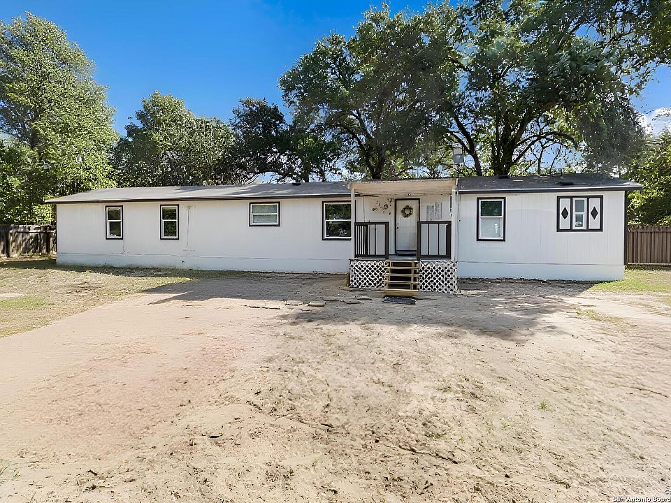 Affordable and Updated Home in Elmendorf, TX! Discover this well-priced 3-bedroom, 2-bath single-wide home located in a quiet, peaceful neighborhood. This home features updated floors, refreshed countertops, and thoughtful touches throughout that make it feel warm and inviting. Enjoy the spacious oversized backyard, perfect for outdoor gatherings, gardening, or simply relaxing. With a functional layout and recent updates that complement the home beautifully, this property offers comfort and value at an incredible price. Don't miss the opportunity to own an updated home with room to grow in Elmendorf, TX!