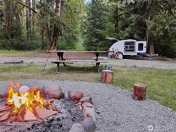 Beautiful, secluded 5.3-acre recreational parcel located on the Carbon River. Extensive surrounding county property creates a feel of deep wilderness for your recreational enjoyment. Large cedar, douglas fir, and big leaf maple trees abound, plus a small healthy year-round creek. Has campfire pit, picnic table, great for Boondocking in your camper/RV (see photos!). Easy access via paved road up to the gate and well-maintained gravel roads throughout property. Current use includes a successful HipCamp Campground site and could very easily accommodate multiple campsites. Guests love it!! Nonbuildable lot. This is a must-see! Call for an appointment and bring your RV! Gate is locked.