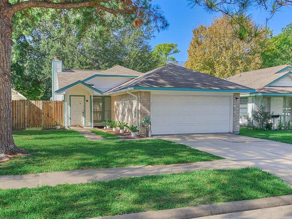 Step inside and be greeted by the charming and inviting interior. The vaulted ceilings create an open and airy atmosphere, while an abundance of natural light streams in. The open-concept layout connects the living, dining, and kitchen areas, making it perfect for entertaining. The wood-burning fireplace creates a warm and inviting ambiance. The kitchen boasts top-of-the-line appliances. Refrigerator, washer, and dryer, included. This home offers three bedrooms, each featuring an expanded closet system. The two full baths are tastefully appointed and offer both functionality and style. With no back neighbors, you can enjoy privacy and tranquility. The spacious yard is adorned with mature trees, providing plenty of shade for those hot summer days. Situated on a cul-de-sac lot, you'll enjoy minimal traffic. Located with easy access to major thoroughfares such as the Hardy Toll Road, Grandparkway, and I-45. Just minutes away from the Woodlands, shopping, dining, and entertainment options.