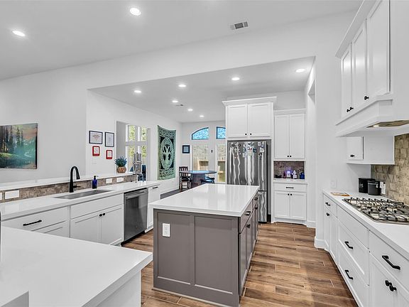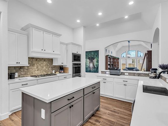 Impressive and like new, this Perry Home has a design and timeless details that create both comfort and style. Enjoy the spacious entry, private office, and formal dining used currently as library that opens up to the heart of the home. Open family room features cast stone fireplace, high ceilings, and wall of windows overlooking yard backed up to the Green Belt. Large island kitchen features great entertainment space w/breakfast bar, walk-in pantry, and stainless appliances. Secluded primary suite w/curved wall of windows, a primary bath w/double sink, garden tub, separate shower, and 2-spacious walk-in closets. Secondary bedrooms are thoughtfully placed, connected by a convenient Jack-and-Jill bath. Additional features: alarm system, smart home, covered patio w/ privacy of protected land directly behind the home, a mudroom and a 3-car garage. This 4 beds flexible living spaces, and refined finishes throughout, make this home the perfect balance of beauty and functionality.