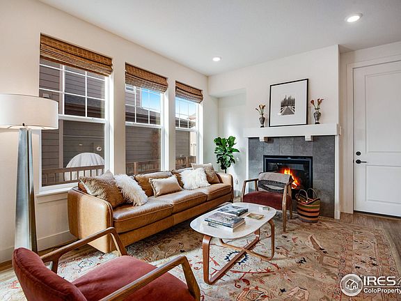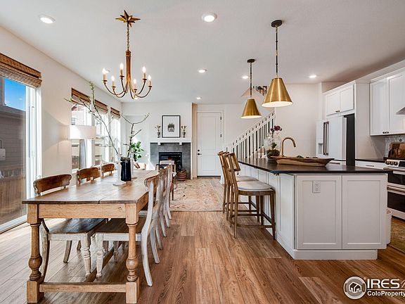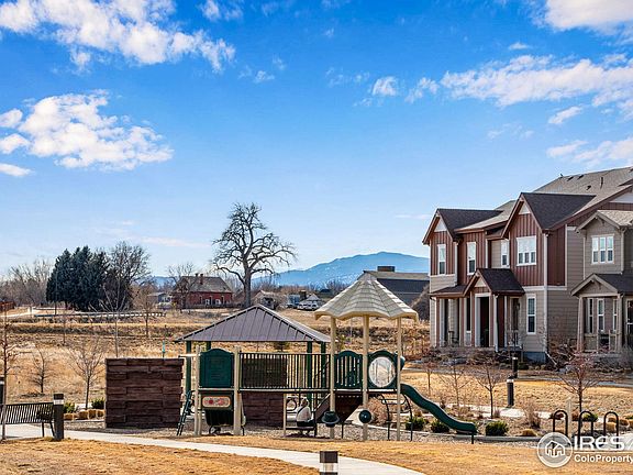 Welcome to one of the limited paired homes in Flatiron Meadows that is south facing & adjacent to a park and greenbelt! Premium upgrades in this "LIKE NEW" home includes a large kitchen island w/ quartz countertops, GE Cafe series stainless steel appliances, iron stair railings, gas fireplace, large primary bedroom with 5-piece bath, loft area, main level private study w/ French doors. This beauty also has a FINISHED basement perfect for a play area or home theater. Low HOA dues & located in the Boulder Valley School District w/ easy access to a network of walking/biking paths. Enjoy where you live!