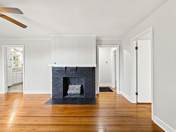 Inviting Living Spaces: Original hardwood floors flow through a bright living room anchored by a classic painted-brick fireplace. The bonus room on the back side of the house would be ideal for a home office, nursery, or even a guest room.