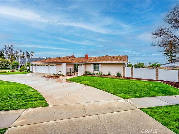 Beautifully updated single level 4br 2ba N Upland pool home, on over 13,000 sq. ft. corner lot! From the impressive circular driveway and lush sprawling landscape, to the gated courtyard with double door entry, this gorgeous home is sure to please. The open interior features high ceilings, a light neutral color pallet of sandy shaded walls and floor tile as well as new sculpted designer carpeting. The formal living and dining rooms are complimented by a warm brick floor to ceiling fireplace, and an entire wall of glass, peering over the rolling lawns to the city lights in the distance. The crisp white updated kitchen with stainless appliances, hosts an abundance of counter space, and adjoins the breakfast and family rooms, making this spacious area perfect for entertaining friends and family. The West wing of the home has four generously sized bedrooms and two full baths, including the private primary with mirrored wardrobes, glass slider wall leading to back yards, and remodeled en suite, boasting dual sink vanity, relaxing soaking tub, and separate glass enclosed, full sized walk in shower. The exterior provides a tranquil escape, with an expanse of soft green grass, bordered by mature plants, trees and foliage, and an iron gated resort style pool and spa, with large sun deck surround and majestic mountain views. The lower level, divided by block retaining walls and a whimsical garden trellis, leads to a large storage shed area. The three car attached garage, tile roof, updated windows and Carrier Infinity series HVAC, newer pool heater, Baldwin door hardware, quiet tree lined neighborhood, and award winning Upland schools, make this the perfect place to call home!