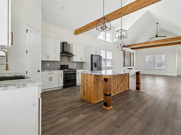 As you step inside, you’ll be greeted by an open concept design that exudes warmth and sophistication. Contemporary light fixtures and exquisite gold accents create an inviting atmosphere, while the sleek stainless steel appliances in the kitchen promise both style and functionality for your culinary adventures.