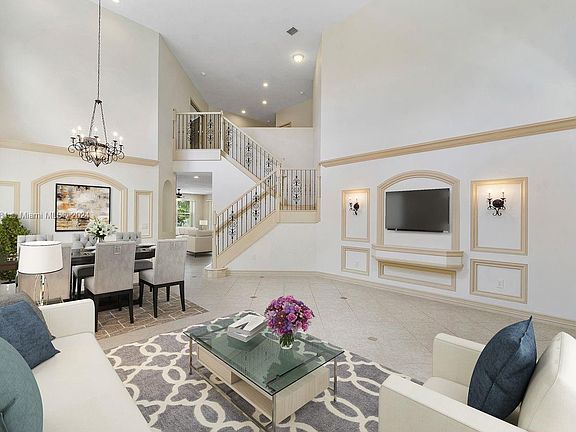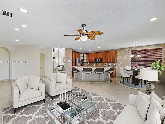Welcome to the Pinnacle of Luxury: Mediterranean Style/Lakefront/Saltwater Pool Home! Desirable location: Monarch Lakes, West Miramar, FL. Stunning 4 Bedroom, 3 Bath, plus Flex/Loft area, move-in-ready gem, combines comfort with elegance. Grand courtyard with double-door entry, volume ceilings, archways, upscale woodwork, marble, luxury plank flooring & custom tile. Gourmet chef's kitchen with granite countertops, deluxe island, & upgraded appliances. Primary Bedroom en-suite: custom closets, dual vanity, roman soaking tub, separate shower; a spa-like atmosphere. Guest Bedroom/Home Office with separate exterior access. Enjoy the sparkling pool & serene lakefront view. Fully fenced backyard with brick pavers, covered lanai & accordion shutters. Community amenities.