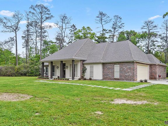 Entertainers Dream!! Stunning Custom 4 BR/3 BA home on 3.8 acres in south Denham Springs on Hwy 16. Entering the foyer you are immediately drawn to the immense and warm expanse of the living area. Fully opening Panoramic doors invite you to view nearly 1200 sq. ft. of covered patio space with outdoor kitchen, double-sided fireplace and the pool/hot tub. The Kitchen is anchored by the huge island with black cosmic leather granite, a gas cooktop with hood vent along with wall oven/microwave, butlers pantry with wine cooler and oversized pantry for storage. The Primary suite features french doors leading to the patio with an en-suite bath and huge adjacent primary closet that connects to the laundry room for convenience. A triple split plan with bedrooms on each side and no detail is missed. The guest "suite" has its own bath that opens to the outdoor area for entertaining guests. Outdoors you'll enjoy a custom tractor/work shed and chicken coup complete with chickens. Simply a showstopper! Separate property across the street on Springhill also available for purchase with approx 120' unused Hwy 16 frontage. Contains 40x80 shop on 1.73 acres with lay down yard, 3 bays with one pull through, lifts, office and full bath, kitchen and upstairs apartment with washer/dryer hookups. Owner/Agent.