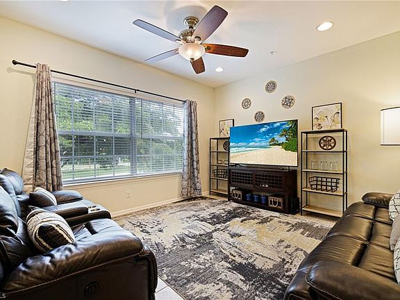 PRICED TO SELL-MAKE AN OFFER! Step into effortless Florida living with this beautifully maintained furnished 3-bedroom, 2-bath carriage home with a 1-car attached garage, ideally located in the highly sought-after gated community of Mirasol at Coconut Point. Perched on the second floor with no upstairs neighbors, this light-filled residence offers the perfect blend of peace, privacy, and spacious comfort. The split-bedroom floor plan features a wide-open living and dining area with tile throughout the main living space. The kitchen is a standout—designed for both function and style—with granite countertops, hardwood cabinetry, stainless steel appliances, and a large walk-in pantry. The primary suite is a relaxing retreat with newly updated tile flooring, a walk-in closet, and an en suite bathroom featuring dual sinks and a walk-in shower. Two additional guest bedrooms are generously sized, offering flexibility for family or visitors, and share a full bath with a tub/shower combo. Start your mornings or end your days on the peaceful, tiled, and screened-in lanai—your own private escape. Mirasol at Coconut Point is a boutique gated community offering resort-style amenities including a sparkling pool and spa, clubhouse, and fitness center—all within walking distance to Coconut Point Mall’s incredible shopping, dining, and entertainment. Conveniently located near FGCU, RSW Airport, top-rated hospitals, and major highways. This home is being sold fully furnished and move-in ready—just bring your suitcase! Don’t miss your chance to own in one of Estero’s most desirable and well-located communities.