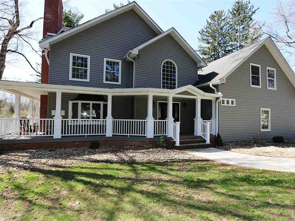 Meticulously redesigned 1940's 5 bedroom, 3 bath home on 3 acres with extensive additions and completely modernized! Too much to mention but highlights include: wrap around porch, grand foyer entry with wrap around stair case and cathedral ceiling, main level laundry, main level bedroom and main level full bath. Formal dining with fireplace, wood floors throughout, open concept kitchen with tons of cabinet and counter space, huge island, eat in area and living room area. Upstairs you'll find a landing with bonus walk in closet and study area, large master suite, 3 additional bedrooms, one with a vaulted ceiling, a roman style full bath with a custom tile shower and a separate tub. Rough-in for laundry already exists on the upper level. Full basement with ample storage space and schrader wood stove. Dual furnace and A/C. Both gas and electric available for stove and dryers. In addition to the garage there is a barn and storage shed! Very spacious inside and out! Very tastefully designed and well planned.