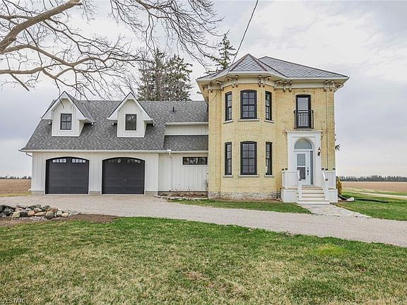 Victorian Country Home restored to perfection and enhanced with a matching Grand addition. All completed with care and overflowing with charm and style. You'll love living here. What you'll discover here is rare : Black and white bent staircase, high period baseboard fit to high ceilings with crown moldings, stool and apron trim enhance large windows with an unbroken view over open fields, Century old artistic eave brackets under the high overhanging soffits, sunlit dormers finished with beautiful lines inside and out, luxury baths, granite and quartz counters, black décor hardware, pot lights galore, 8 ft doors, beautiful large plank wood floors, 480 sq ft of covered verandahs, slate and steel roofing, stone, brick, board and batten, 8' x 10' insulated garage doors for oversized vehicles, a finished concrete pad already in place for a 1700 sq ft outbuilding, open space, fresh air. The exterior architectural theme of this home flows into and throughout the entire interior. Most of all it just feels really good.