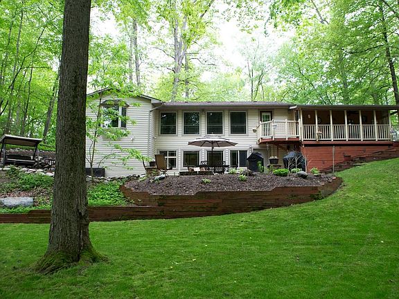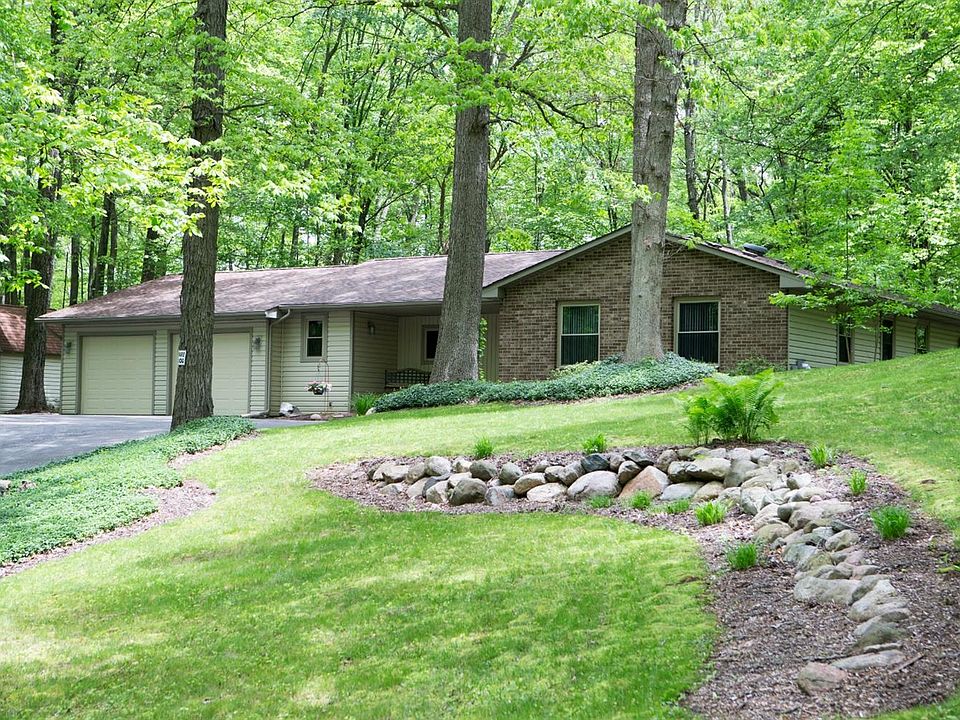 Absolutely gorgeous 3.98 acre picturesque setting. This completely updated ranch comes with an open concept living area with large windows, and kitchen with Maple cabinets, Granite countertops and beautiful cherry hardwood floors. Fully finished lower level walkout with additional kitchen, large family room, full bath, office area, and bonus room. Covered deck area off main level and multi-level paver patio off lower level. 2 1/2 car attached garage with workshop plus a 13x13 Shed with overhead storage. Large playscape for younger family members. New Central air unit.
