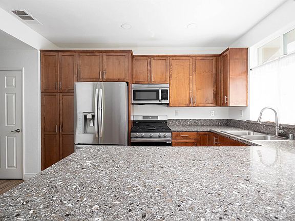 Back on market through no fault of property. Buyer could not perform. Located in the highly sought after community of San Miguel. Move in ready with fresh paint, new laminate flooring, 2 car garage, AC. Easy freeway access, close to all. Community features gym and community pool and recreation hall.