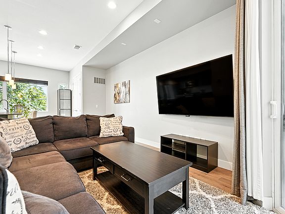 Beautiful 1250 square foot 3-story (plus rooftop!) row-style townhome 1 block from Jefferson Park and close to downtown. Home is pet-friendly and fully furnished with all standard appliances, coffee maker, sets of dishes, glasses, cups, cutlery and utensils to minimize moving stress and effort - perfect for anyone new to town or just looking to avoid buying everything new. Existing furniture and decor can be removed if desired by renter. 10 foot ceilings and a lot of natural light makes this place feel very comfortable. Home is lightly decorated to allow for personalization upon move-in. Spacious rooftop deck with furniture offers excellent views of downtown, Mile High Stadium, the mountains and the gorgeous Colorado sunsets. 2-car garage great for keeping your cars off the street or adding extra storage space. Ecobee Smart thermostat allows for personalized climate schedules and remote control. Furnace is brand new and both it and the AC unit are both very energy efficient. Home overall is as low-maintenance as they come. Linens and plants shown in the pictures are not included.