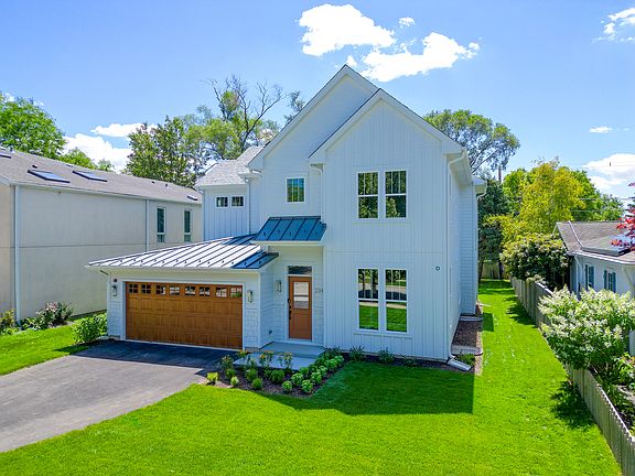 AVAILABLE NOW-MOVE IN READY! Another Stunning NEW construction home from Kogen-Friedman Development! Located in District #28 , Greenbriar Elementary, Northbrook Jr. High school, Glenbrook North High school Features include 10' ceilings on the 1st & 2nd floors, beam ceilings in family room; hardwood flooring 1st & 2nd floors, open floor plan, COVERED OUTDOOR PATIO AREA, True Modern Farmhouse exterior with James Hardie white siding & metal roof detail. Gourmet kitchen, oversized center island (kitchen faces back yard so you can see all activity while cooking), quartz counter tops thru-out, Viking appliance package, 42 inch built in Fridge, 36 inch range, Kitchen open to large family room fireplace & wine bar, separate formal dining area. Large mud room; with enormous storage closet custom bench with cubbies accessed from a 2 car garage. The 2nd floor features 4 bedrooms all with vaulted ceilings, private or adjoining baths. Primary bedroom with volume ceiling hardwood flooring & bay window, customized walk-in closet; luxurious bath with walk in shower free-standing tub & separate make up area. 2nd floor laundry. Finished basement provides an additional 1240 sq. ft. of finished space with a 5th bedroom ,full bath, exercise area & large wet bar for entertaining. All selections picked by professional designer. Pictures are of the actual house.