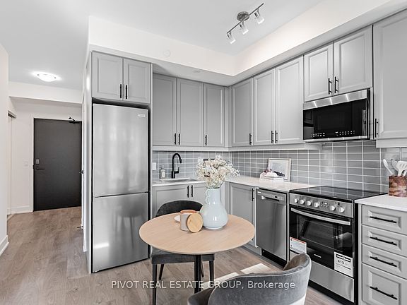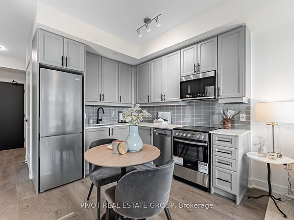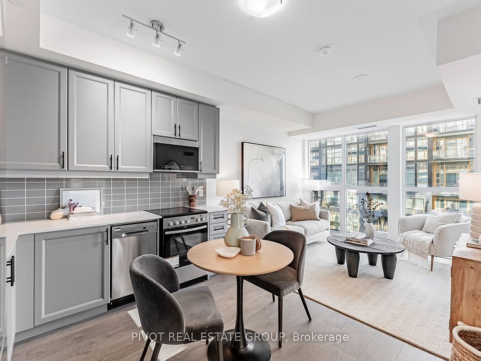 Enjoy Luxury Living in Oakville at NUVO Condominiums by Crystal Homes & Fernbrook Homes. Approx 575 sqft, 1 Bedroom + Den with 2 Bathrooms. Functional Layout, Open Concept, Gourmet Kitchen With Stainless Steel Appliances, Stone Countertops w/ beautiful backsplash. Primary Bedroom With 3Pc Ensuite. Approx 9ft smooth ceilings in main areas excluding bulk heads. Five Star Amenities Include: Putting Green, Rooftop pool and cabanas, rooftop BBQ, Fitness Centre, Community Garden, Multi-purpose activity court, work/share boardrooms, pet wash station, and more. 24/7 Concierge with 1Valet system. Includes 1 Parking & 1 Locker. Taxes Not Yet Assessed. Furniture for Staging Purpose Only.