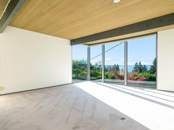 Discover this beautifully designed 4-bedroom + den, 2.75-bath mid-century modern home, tucked away in a private cul-de-sac in the highly sought-after Olympic Manor neighborhood. Designed by the renowned A.O. Bumgardner, this architectural gem is filled with natural light and offers expansive views of Puget Sound and the Olympic Mountains.