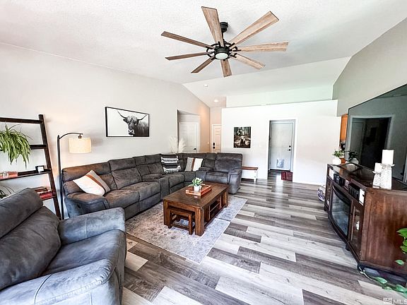 Welcome to this beautifully maintained home in Spanish Springs' sought after neighborhood, Eagle Canyon. Featuring new luxury vinyl plank flooring (2023), updated fixtures and finishes along with new, tasteful and neutral interior paint create a bright and airy feel. Outside, the backyard is an entertainer’s paradise. A sparkling in-ground heated pool invites year-round fun and relaxation, while the large patio and beautifully landscaped yard create the perfect setting for gatherings., The property also features fruit trees, a spacious storage shed and two large RV gates, providing plenty of room for parking recreational vehicles or storage. This home is equipped with smart technology, including a smart thermostat for energy-efficient climate control and keyless entry for added security and convenience. Located with easy access to Pyramid highway, top-rated schools, local parks, shopping, and a quick drive to Pyramid Lake, providing close proximity to these conveniences while maintaining the quiet country feel. Don’t miss out on this rare opportunity—schedule a tour to see all that this exceptional home has to offer! Seller holds an active real estate license