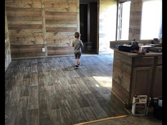 Mobile home has been remodeled with new cabinets appliances flooring paneling new bathroom