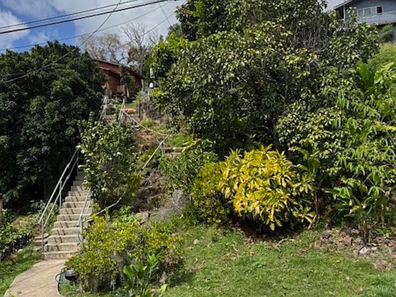 Hawaiian Home Lands in Papakolea. Downslope lot, high ceilings, wrap around porch and spacious living. Lots of storage.