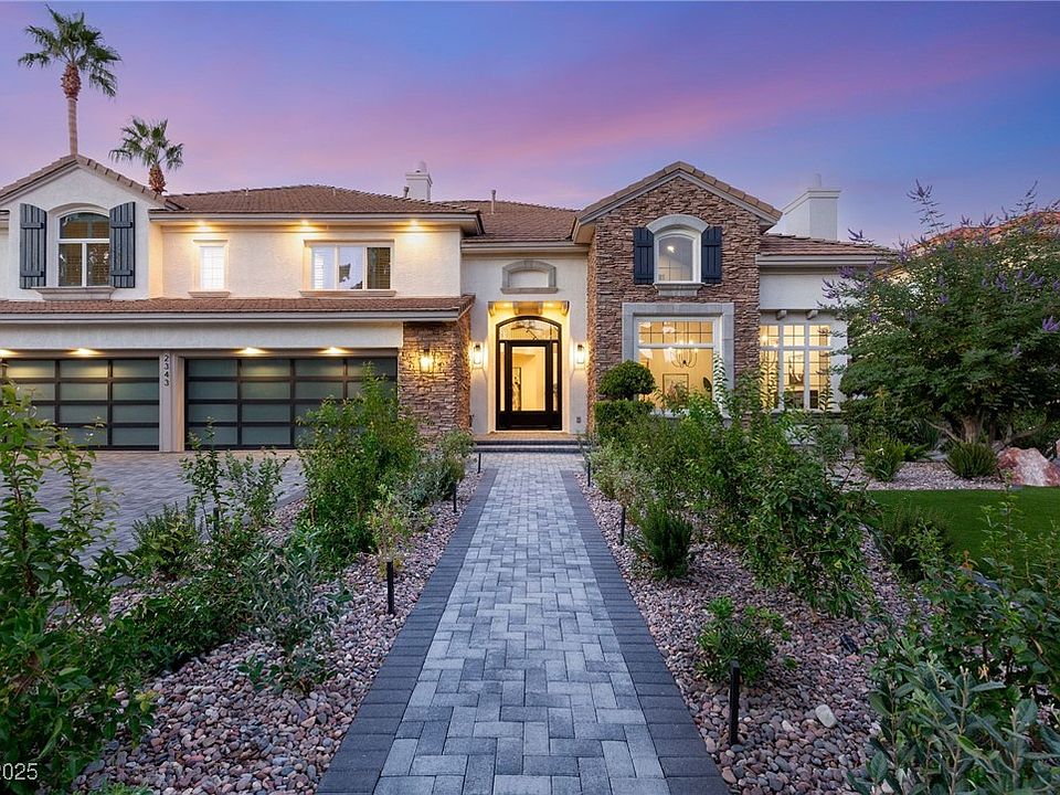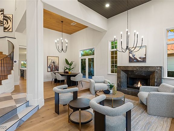 Located inside the guard-gated community of The Fountains, this fully reimagined home blends coastal warmth with modern sophistication. Every inch has been redesigned with natural finishes, wide plank oak flooring, and thoughtful details throughout. The heart of the home is a stunning chef’s kitchen featuring an oversized island, stainless steel appliances, and custom wood cabinetry that opens to a spacious living area with panoramic folding doors. Outside, enjoy a private backyard retreat with a sparkling pool, spa, mature landscaping, and multiple covered lounge spaces perfect for entertaining or quiet evenings at home. The primary suite offers a calm, airy feel with vaulted ceilings, a fireplace, and a spa-like bath with dual showers and a soaking tub. With 5 bedrooms, 4.5 baths, and a 4 car garage, this home captures the perfect blend of comfort, design, and luxury in one of Henderson’s most beloved neighborhoods.