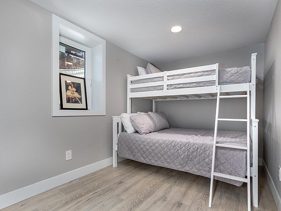 Full-sized Bed with Twin Bunk: Perfect for accommodating a small group or a family, this bedroom features a full-sized bed and an upper bunk with a twin-sized bed. It's an ideal setup for guests of all ages. The room offers cozy sleeping arrangements and a comfortable space to relax.