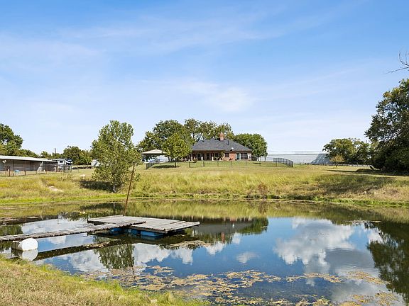 Experience wide-open living in this pristine 2,140 sqft, 3-bedroom, 2.5-bathroom home perfectly situated on over 6 ACRES of scenic, unrestricted land. Freshly painted throughout, this property combines timeless style with the freedom of country living. Enjoy the open living space equipped with an isokern fireplace that uses volcanic pumice material with a high insulation value & heat-reflective properties, leading to greater efficiency & cleaner burning for those cold winter nights. No city limits, no compromises. Outdoors, this property is a dream for anyone who loves space, self-sufficiency, or projects of any kind. A 30'x40' barn with water and electricity, a 15'x40' lean-to, and a 25'x40' powered workshop provide extraordinary capacity for equipment, hobbies, or livestock operations. The ag exemption and existing cattle setup keep taxes low while offering true agricultural potential. Cast a line in your own private fishing pond, or unwind beneath endless Texas skies. With 3 covered parking spaces and room to roam, this property delivers rural independence with modern livability.