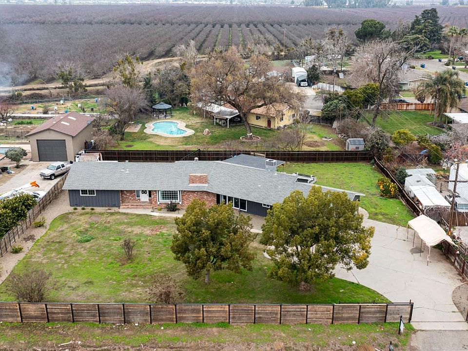Welcome to this completely modernized ranch style home situated on almost 1/2 an acre of land in the city of Merced. As you step inside, you'll be captivated by the exquisite texture ceiling, with beautiful, exposed beams that add a touch of elegance. The open floor plan seamlessly connects the living spaces, providing ample room for entertaining and relaxation. The vinyl flooring throughout the house enhances the modern atmosphere, while the fireplace, made of sleek black bricks, creates a cozy focal point in the main living area. The kitchen is a chef's dream, with ample space on the quartz counters for meal preparation. The subway tile backsplash adds a touch of sophistication, while the floating shelves provide a contemporary vibe. The primary suite is a true sanctuary, featuring a large custom walk-in closet that provides ample storage space. The bathroom in the primary suite is a true showstopper, with a sunken tub and a walk-in shower that exudes relaxation. As you step outside, you'll find that the outdoor space is designed with entertaining in mind. Whether you want to host a summer barbecue or simply enjoy the tranquility of your own backyard, there is plenty of space to do so!