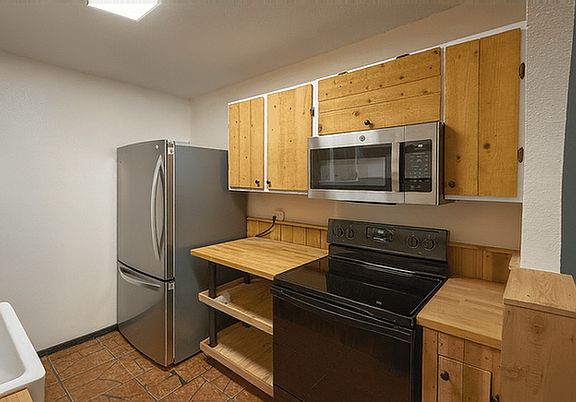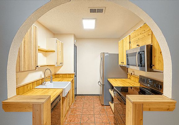 Private fenced yardCeiling fansCovered patioWasher and dryer hookupsDedicated dining areaBeautiful butcher block countersBuilt-in storage shelves