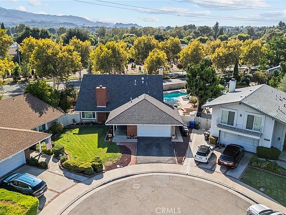 Welcome to this spacious 5-bedroom, 3- full bath home located at the end of a cul-de-sac in the highly sought after Old Orchard 3 neighborhood in the heart of Valencia with NO HOA fees or Mello Roos. This well-maintained property features a versatile layout with one bedroom and full bathroom on the first floor, ideal for guests or flexible use. Upstairs includes the en suite and 3 additional bedrooms. The open floor plan includes a newly renovated eat in kitchen with backyard views, perfect for entertaining. Two fireplaces add warmth and charm, while dual-pane windows throughout enhance natural light and energy efficiency. Step outside to a private backyard retreat with a large swimming pool, spa, and a generous covered patio-ideal for outdoor dining and relaxation. Conveniently located within walking distance to award winning primary and secondary schools, parks, shopping and restaurants makes this home a perfect choice. Don't miss this opportunity to own a beautiful home that is priced to sell in one of Valencia's most desirable communities!