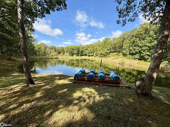 Nestled in the rolling hills of Southern Ringgold County, Iowa, just south of Mount Ayr, this secluded property offers the perfect blend of peaceful country living and recreational opportunity. The 3,989 sq. ft. ranch-style home is set back off the road, providing a peaceful setting with panoramic views of the surrounding timber and a beautiful stocked pond. Inside, the home features five bedrooms, one non-conforming bedroom/office space, one full bath, two three-quarter baths, and one half bath, all finished with warm oak details. The inviting screened-in porch overlooks the pond and oak timber, offering a relaxing retreat to enjoy the sights and sounds of nature. A spacious walkout basement provides additional living space, including a patio area ideal for gatherings or simply taking in the peaceful surroundings. The basement also has radiant floor heat. For those needing workspace or storage, the property includes a 40’x60’ fully finished and insulated outbuilding with radiant floor heat, partial heat in the second garage stall, and a fully finished bathroom. A 24’x40’ cold storage addition extends the building’s versatility for equipment, vehicles, or seasonal items. The land itself is primarily wooded with a mix of oak and hickory, offering abundant amounts of deer and turkey. The property connects to large tracts of timber on all sides, creating a proven wildlife corridor. Call today to set up your own private showing!