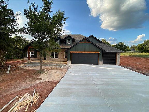 *$2,000 in closing costs if buyer uses builder's preferred lender!* This magnificent home is a premium POND LOT on 1.25 acre (m/l) from RT Quality Homes will blow you away! Enjoy the gorgeous ceramic wood look flooring throughout the open living room and kitchen areas. The study area could be a great additional 4th bedroom or perfect for your home office. The details of the fireplace in the living room are beautiful! Kitchen boasts stainless steel appliances, granite countertops, an island with room for seating, and plenty of cabinet storage! The rooms are spacious and all have carpet throughout. The master suite features a bathroom with 2 separate vanities, granite countertops, walk-in shower, and a walk-in closet! Spacious laundry room! The backyard features a relaxing covered patio and a huge backyard! Enjoy this 1.25 acre (m/l) to play, entertain, or just enjoy a cup of coffee to the Oklahoma sunrise! CONCRETE ROAD & SHOPS ARE ALLOWED UP TO 30'X50' ! **PLANS, SPECIFICATIONS, DETAILS AND PRICING SUBJECT TO CHANGE WITHOUT NOTICE**