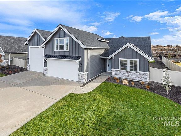 JUST FINISHED and offering a large RV garage, bonus and den! Easy, single level living includes main level office + upstairs bonus room complete with full bathroom. The impressive garage is nearly 1100 Sq Ft with 40 ft RV Bay, 14 ft door, 16 ft ceilings, fully insulated with epoxy flooring. Luxe level finishes inside with professional series Wolf® appliances: 36" gas range, double ovens, microwave, + SubZero® fridge + Asko dishwasher. Classic white & warm wood tones throughout. Soaring vaulted great room, cathedral style ceiling windows with ceiling height fireplace as the stunning focal point. Split bedroom allows great privacy in the primary suite featuring an elegant free standing soaker tub, walk in tile shower, and separate vanities. Spacious lot is fully landscaped and offers covered patio.