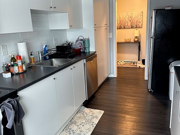 The suite features large bedrooms, all new flooring throughout the living areas and original hardwoods in the bedrooms. New gourmet kitchen features soft close drawers and cabinets, subway wall tile, stainless steel refrigerator, electric glass top stove, dishwasher and microwave. Ceiling fans are in all the rooms.
